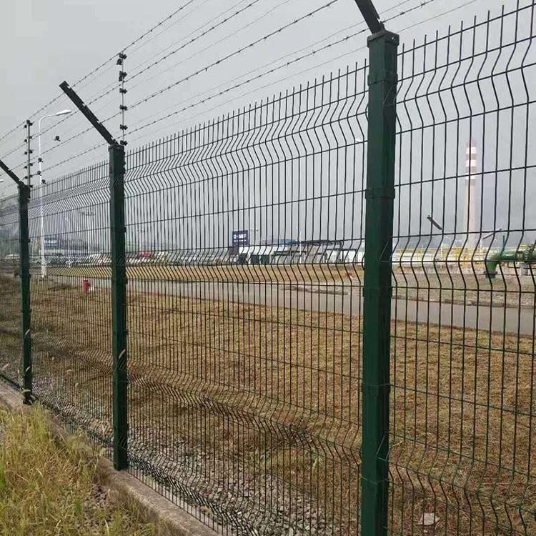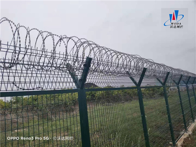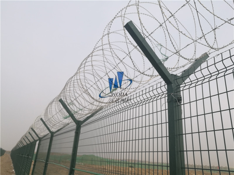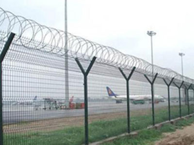 機場防護網(wǎng)又稱作“飛行區(qū)鋼筋網(wǎng)圍界”,是由V型支架立柱,加強型焊接片網(wǎng),防盜連接件和熱鍍鋅刀片刺籠組成強度和防御性很高。近年來,被廣泛應(yīng)用在機場,軍事基地等場所。注:如果在機場防護網(wǎng)頂部加裝刀片刺絲、刀片刺繩后又很好的增強了防護性能。采用電鍍、熱鍍、噴塑、浸塑等防腐形式,具有很好的不老化、不怕曬、耐候等特點。其產(chǎn)品造型美觀、花色多樣,既起到圍欄作用,又起到美化作用。由于具有防護性高、防攀爬能力好,網(wǎng)片連接方式采用特制SBS緊扣件,防止人為的破壞性拆卸,橫向四道折彎加強筋,使網(wǎng)面強度顯著增加。