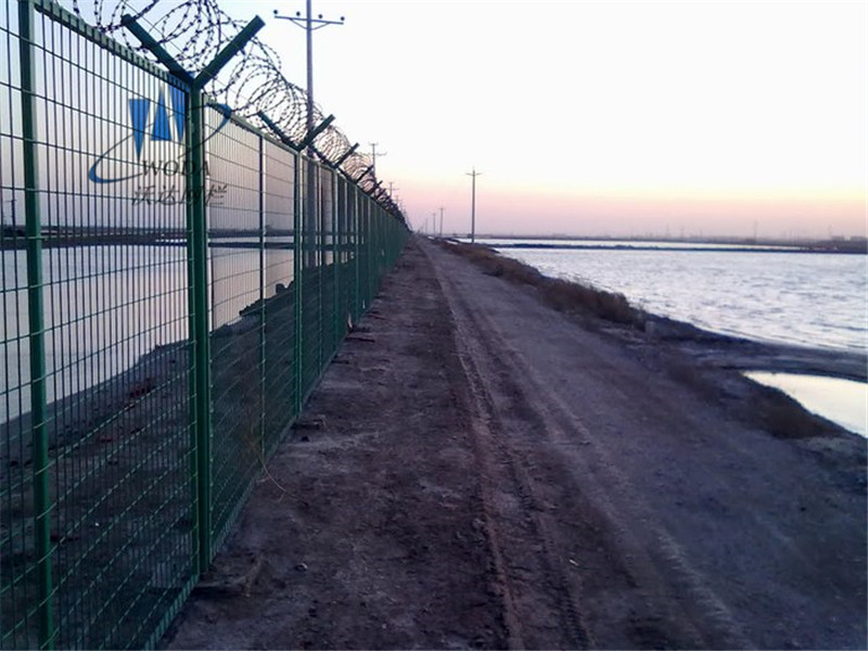 隔離柵主要用V型支架立拄,加強(qiáng)型焊接片網(wǎng),安全防盜連接件和熱鍍鋅刀片刺繩隔離柵組成強(qiáng)度和安全防御性級別很高。近年來,被廣泛應(yīng)用在 ,軍事基地等高安全場所。注:如果在 隔離柵頂部加裝刀片刺絲,刀片刺繩后又很好的增強(qiáng)了安全防護(hù)性能。采用熱鍍,噴塑,電鍍,浸塑等防腐形式,具有很好的抗老化,抗曬,耐候等特點(diǎn)。