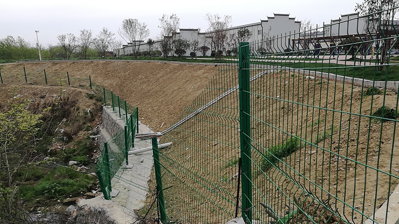 桃型柱隔離柵由三角折彎網(wǎng)片與桃形立柱組成,與其他金屬護(hù)欄網(wǎng)不同的是,桃型柱隔離柵在安裝時(shí),并非是在安裝完所有立柱后,再安裝網(wǎng)片的,而是先安裝第一根立柱,緊接著安裝第一張網(wǎng)片,再安裝第二根立柱,再掛網(wǎng)片,依此類推。之所以桃形柱防護(hù)網(wǎng)采用這樣的方式安裝,是因?yàn)樗谶B接時(shí),是不需要用螺絲配件來組裝的,而是直接將網(wǎng)片掛在立柱的凹槽內(nèi),立柱所帶的凹槽是根據(jù)網(wǎng)片的尺寸來訂做的,所以,稍微有點(diǎn)誤差就無法安裝。在斜坡上安裝時(shí),要先測量好斜坡的坡度,再制定安裝方案,最后敲定防護(hù)網(wǎng)尺寸。如果是高低不平的地面,安裝起來則比較麻煩,甚至是無法安裝。