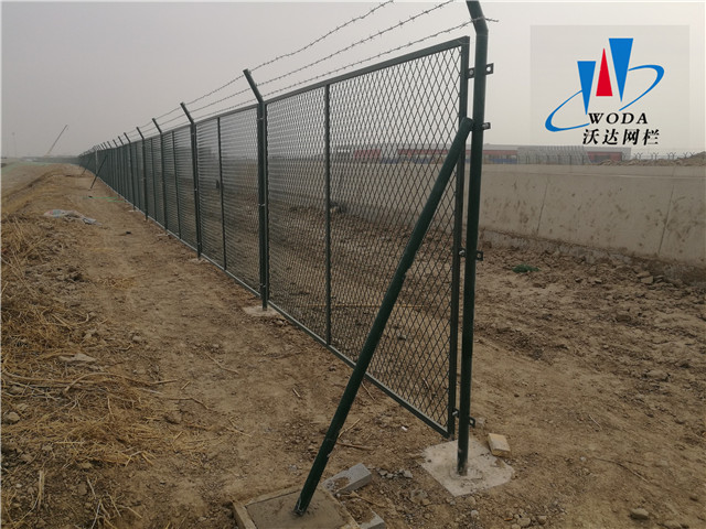 框架隔離柵廠家--沃達(dá)隔離柵廠,專(zhuān)業(yè)生產(chǎn)各種規(guī)格的機(jī)場(chǎng)防護(hù)網(wǎng),球場(chǎng)圍網(wǎng),我們?yōu)槟峁┛蚣芨綦x柵價(jià)格,框架隔離柵報(bào)價(jià).并備有大量現(xiàn)貨。訂貨電話(huà):13313085808