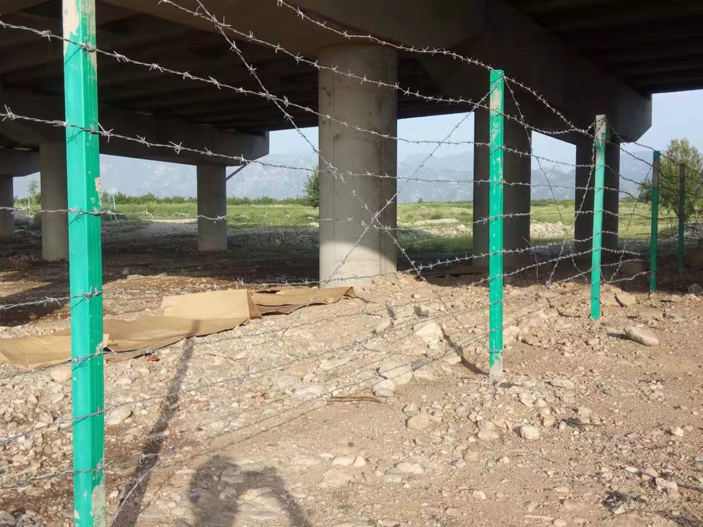刺鐵絲隔離柵主要采用刺鐵絲和立柱組合,做防護網(wǎng)使用,起到隔離防護的作用。刺鐵絲也可配合柵欄使用,架在柵欄的上方,多用在變電站,飛機場等地。