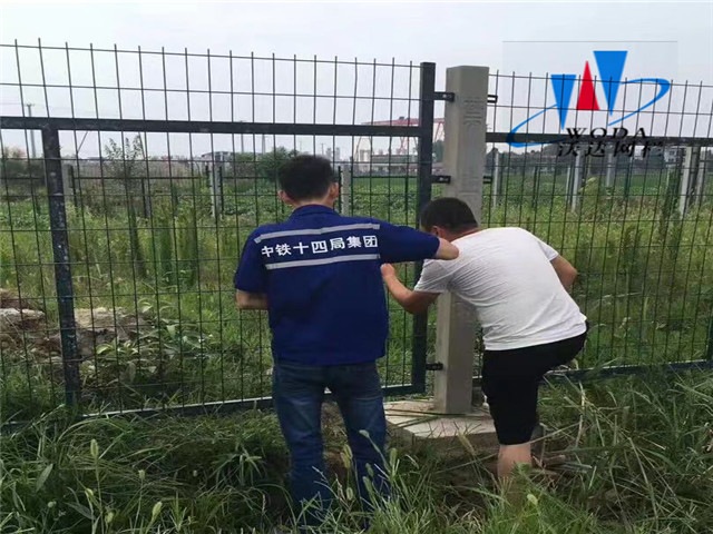直接挖坑水泥預(yù)埋安裝式:如現(xiàn)場無墻體,既泥土地,需挖坑預(yù)埋,坑為60L*60W*70H,用混凝土澆灌,將立柱埋入垂直固定,待水泥凝固后方可安裝鐵路隔離柵,這種方式的特點(diǎn)是較螺栓連接更為牢固,但預(yù)設(shè)時(shí)必須注意直線與水平線。