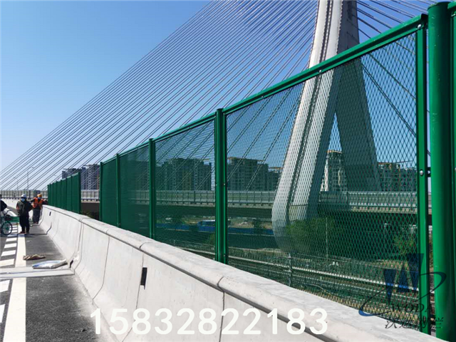 橋梁防護(hù)網(wǎng)隔離柵的英文指設(shè)置于橋梁上的護(hù)欄。橋梁防防護(hù)網(wǎng)的目的是為了防止失控車輛越出橋外,具有使車輛不能突破,下穿,翻越橋梁以及美化橋梁建筑的功能。