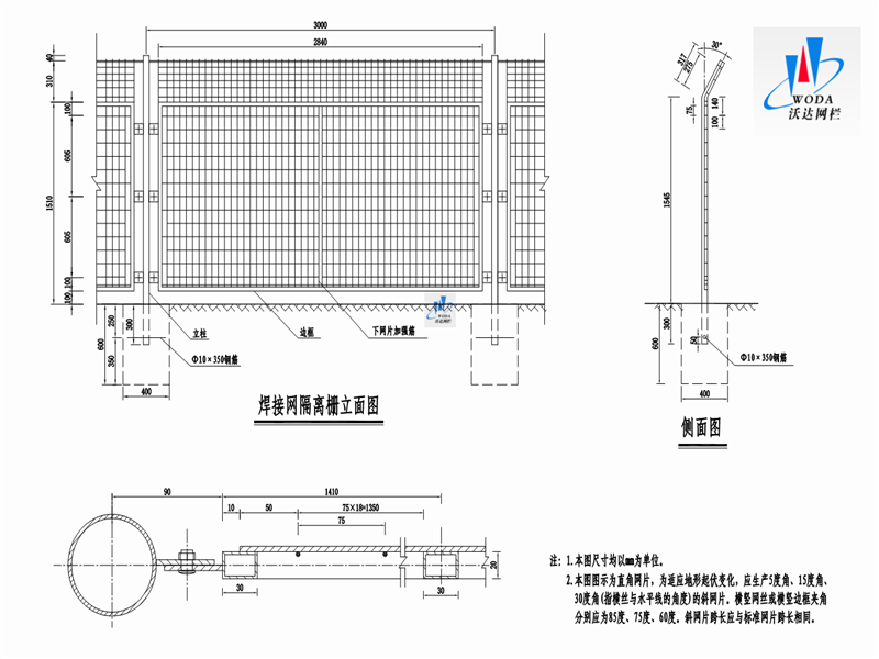 青銅峽至中衛(wèi)段焊接網(wǎng)隔離柵圖紙