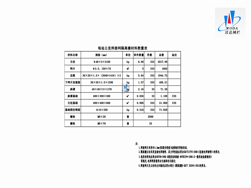 焊接網(wǎng)隔離柵每延公里材料數(shù)量表下圖