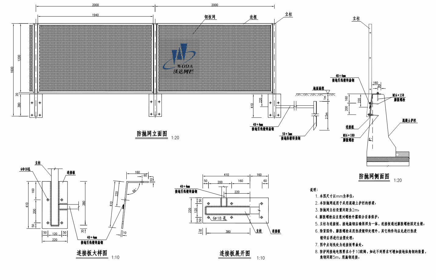 3.防拋網(wǎng)立柱設(shè)置間距為2m;
