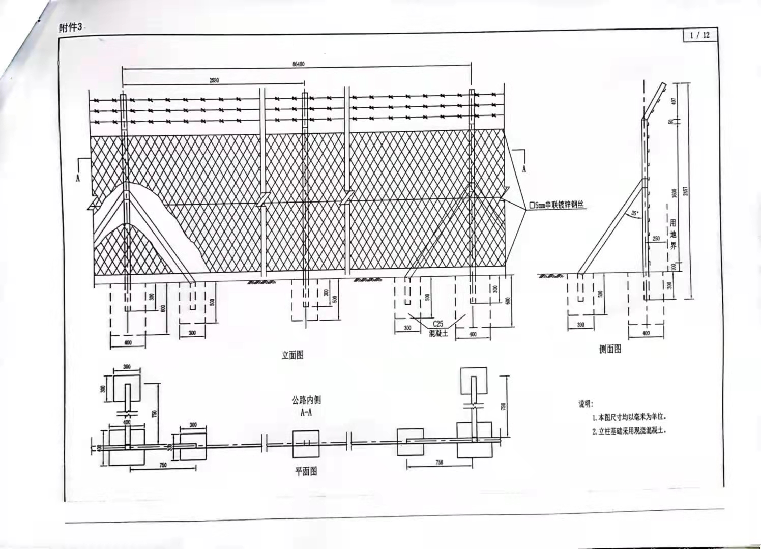 1、本圖尺寸均以毫米為單位。