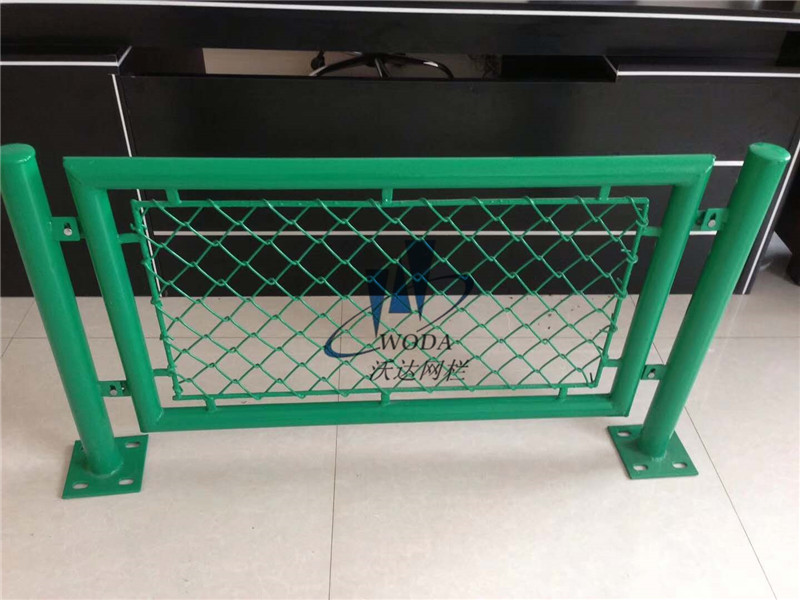 球場圍網(wǎng)安裝包括立桿、上下橫桿及圍網(wǎng),所有立桿、橫桿、圍網(wǎng)及門都采用醇酸紅防銹底漆涂兩層以上,再采用醇酸戶外磁漆涂兩道,顏色為綠色,而且圍網(wǎng)安裝包括扁鐵和所有零配固定件,立桿為:65鋼管,橫桿為?50鋼管,圍網(wǎng):包膠圍網(wǎng),網(wǎng)距為50mm×50mm,外徑為4.0mm,內(nèi)徑為2.5mm高度為4.0m,顏色為綠色,門是 60鋼管架,圍網(wǎng)型號與球場圍網(wǎng)一致。