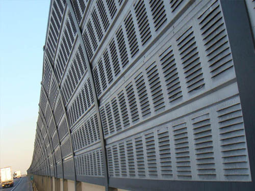 直立型聲屏障的表面有很多小孔,聲音進(jìn)入小孔后,便會(huì)在結(jié)構(gòu)的內(nèi)壁中胡亂反射,直至大部份聲波的能量都消耗了,變成熱能,達(dá)到了隔音的效果。